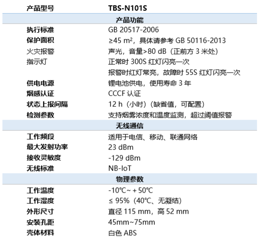 为进一步满足市场多样化需求,优化消防解决方案,无限娱乐科技NB-IoT新品烟感TBS-N101S正式投放市场。 TBS-N101S是独立式无线感烟报警器,基于NB-IoT标准,具备远距离无线通信能力,无需布线、即买即用;可同时检测烟雾浓度和温度,提升检测准确率;采用新方案设计,有效确保产品电池使用寿命更长;支持声光、电话、短信、平台等多种报警方式,有效预防火灾发生。