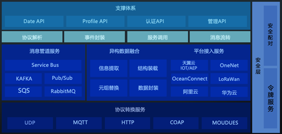 无限娱乐物联网中台是连接终端、平台与行业应用系统的数据交换中心。旨在解决不厂商、不同品类、不同通讯类型的终端端产品快速上云,同时实现对产品管理、产品协议解析、设备管理、存储、转发和命令下发等功能;应用侧提供了丰富API接口,多元数据推送功能。使平台接入者可以更加专注于自身应用的开发,而不用将工作重心放在设备接入层的环境搭建上。从而缩短物联网系统的形成周期,降低平台接入者研发、运营和运维成本。